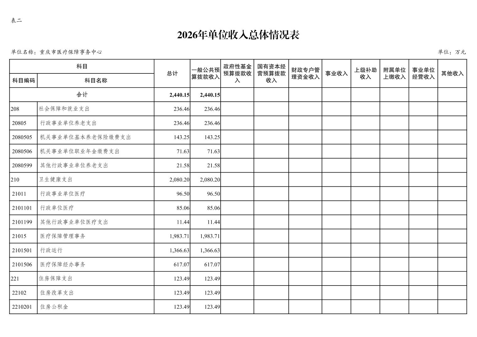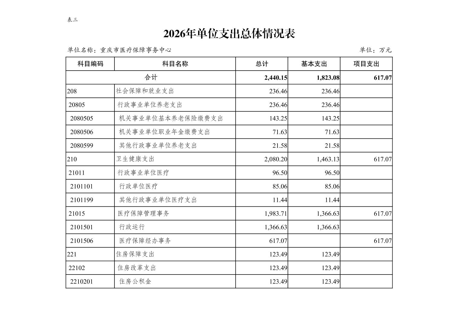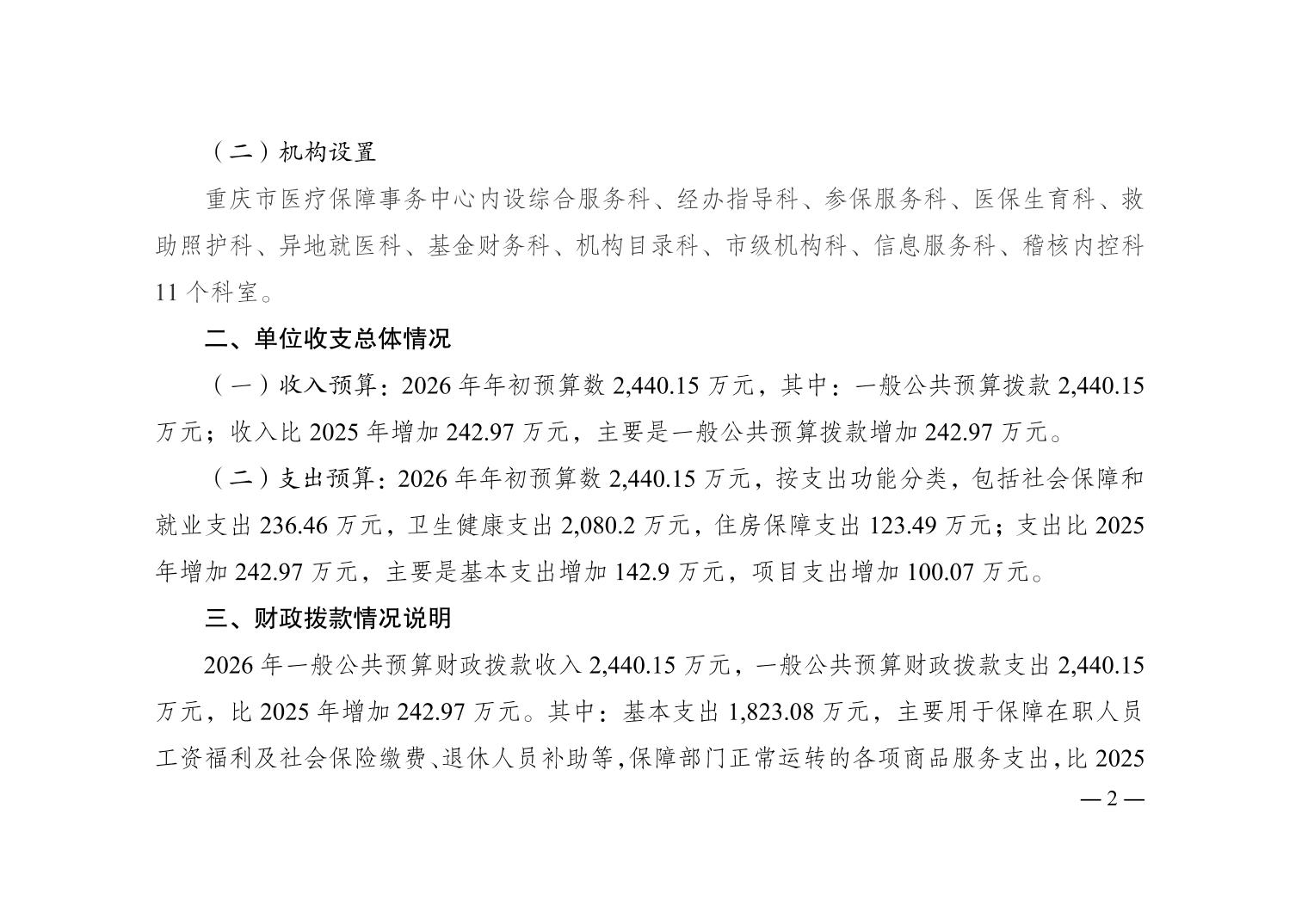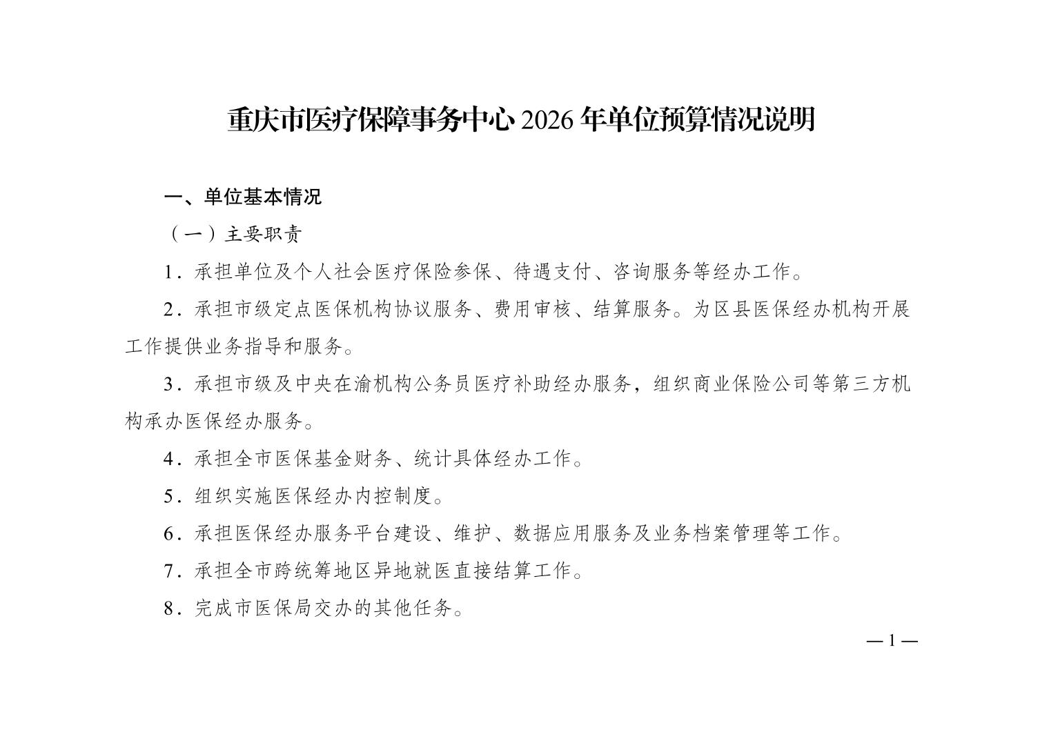 重庆市医疗保障事务中心2026年单位预算情况说明