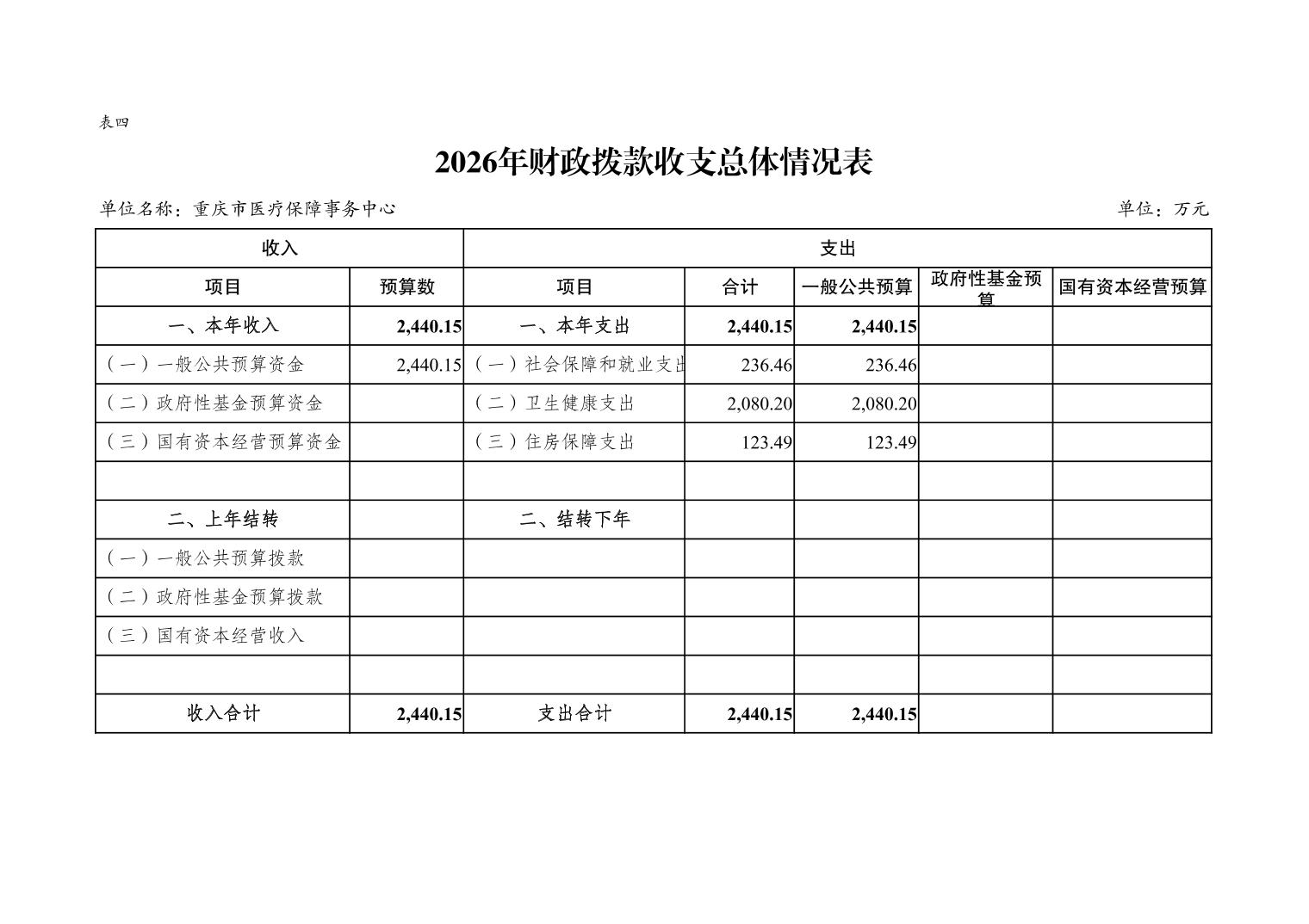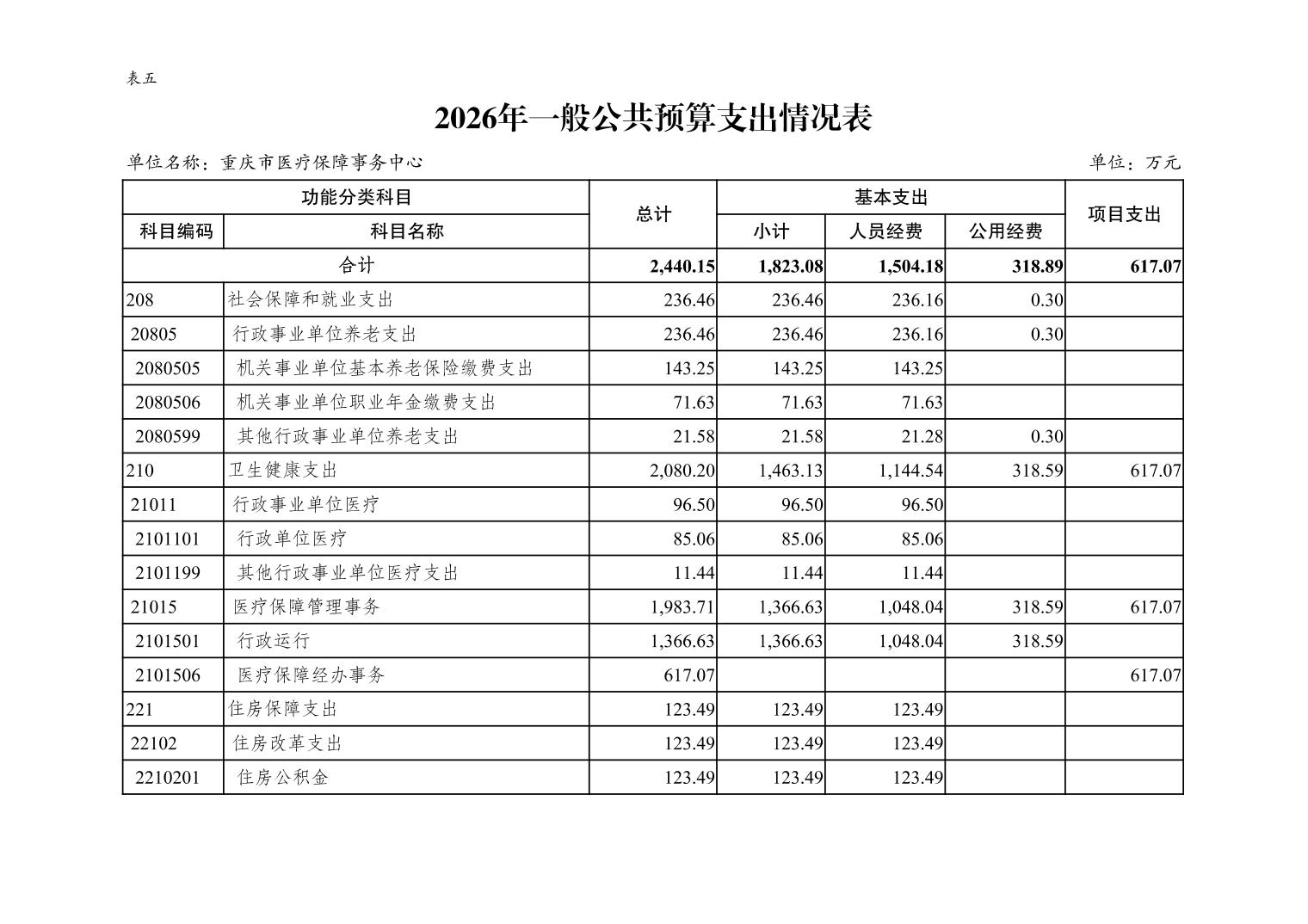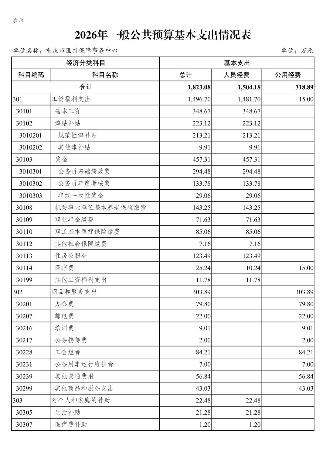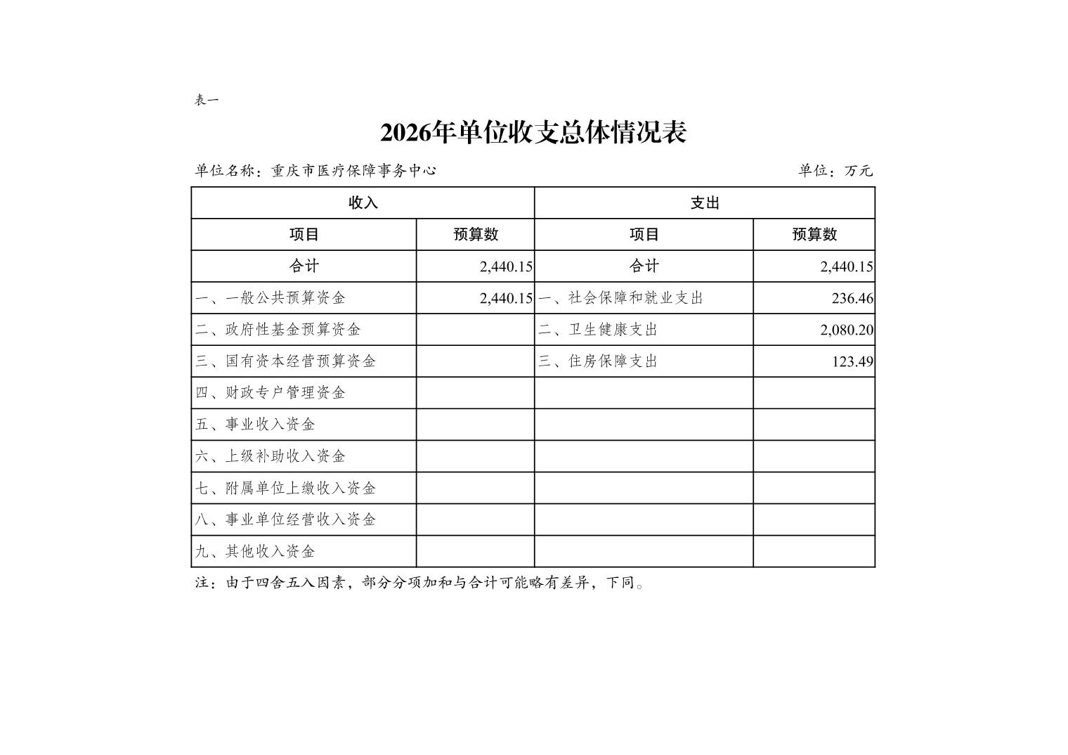 重庆市医疗保障事务中心2026年单位预算情况说明