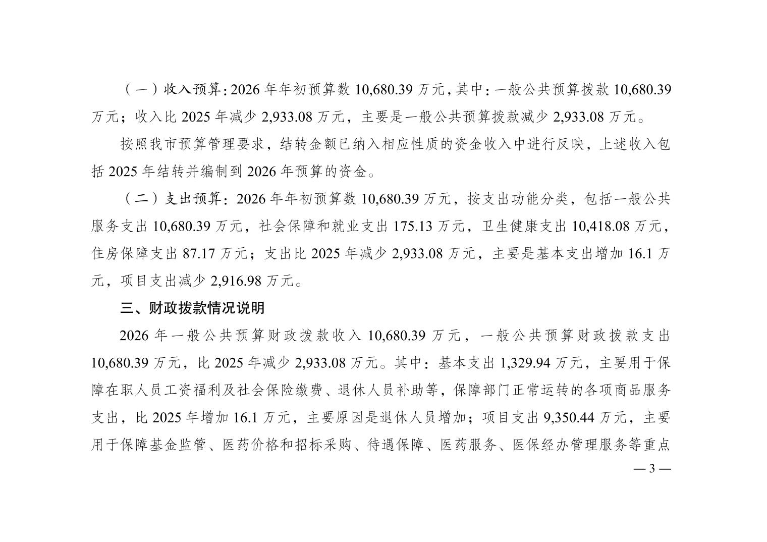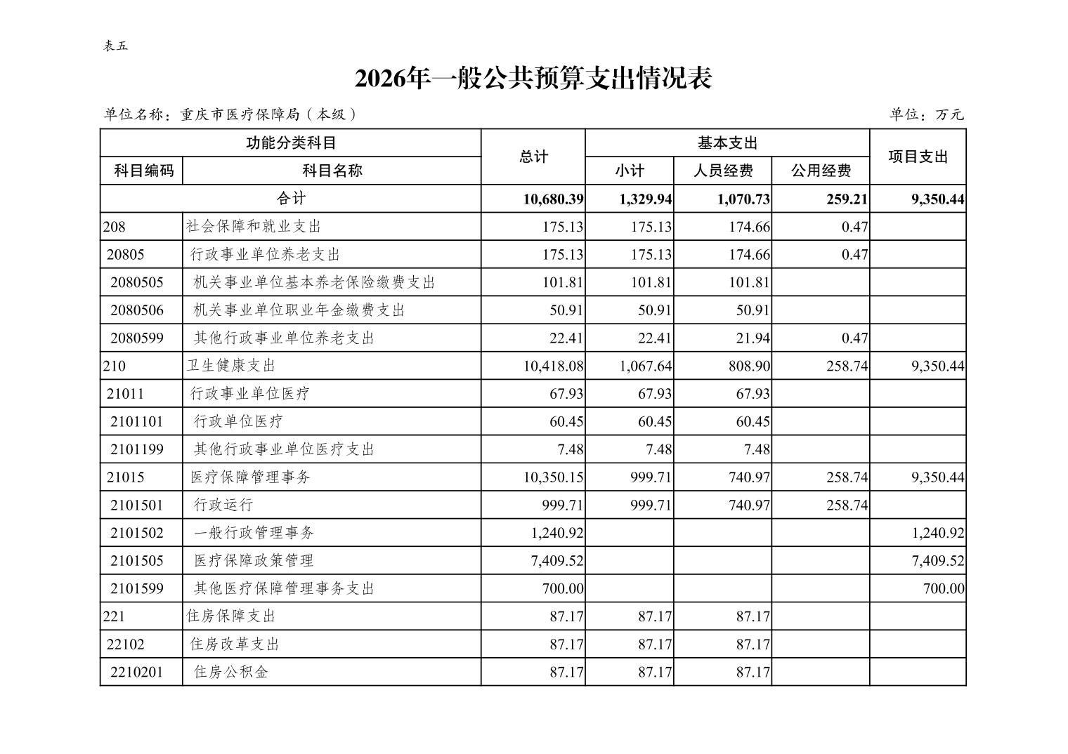重庆市医疗保障局(本级)2026年单位预算情况说明